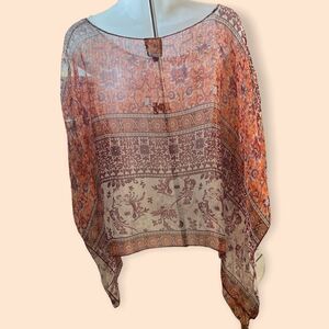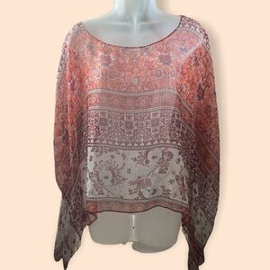 Blue Moon Women’s Top Floral Kimono Sleeve Pullover- Poncho Style Blouse- Size 2