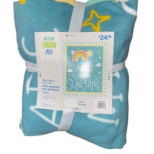 Cozy blue throw kit with cheerful design. Ideal for crafting a warm blanket.
