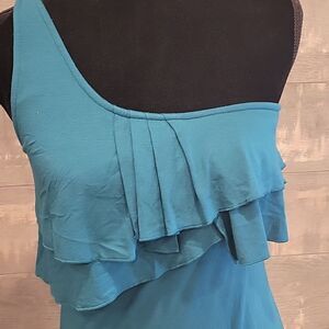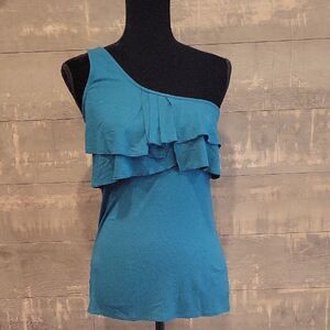 Blue One-Shoulder Ruffle Top