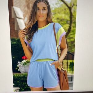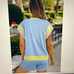 Blue Purple Green Shorts Set Stretch Knit Plus Size 2XL