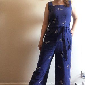 Blue/Purple Jumpsuit with White Embroidered Flowers