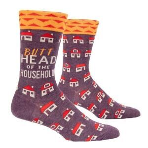 BlueQ Funny Men's Crew Novelty Socks Butthead Of The House Fits Shoe 7-12. These are in new with tags condition. Please message me prior to purchase with any questions. Thank you!
