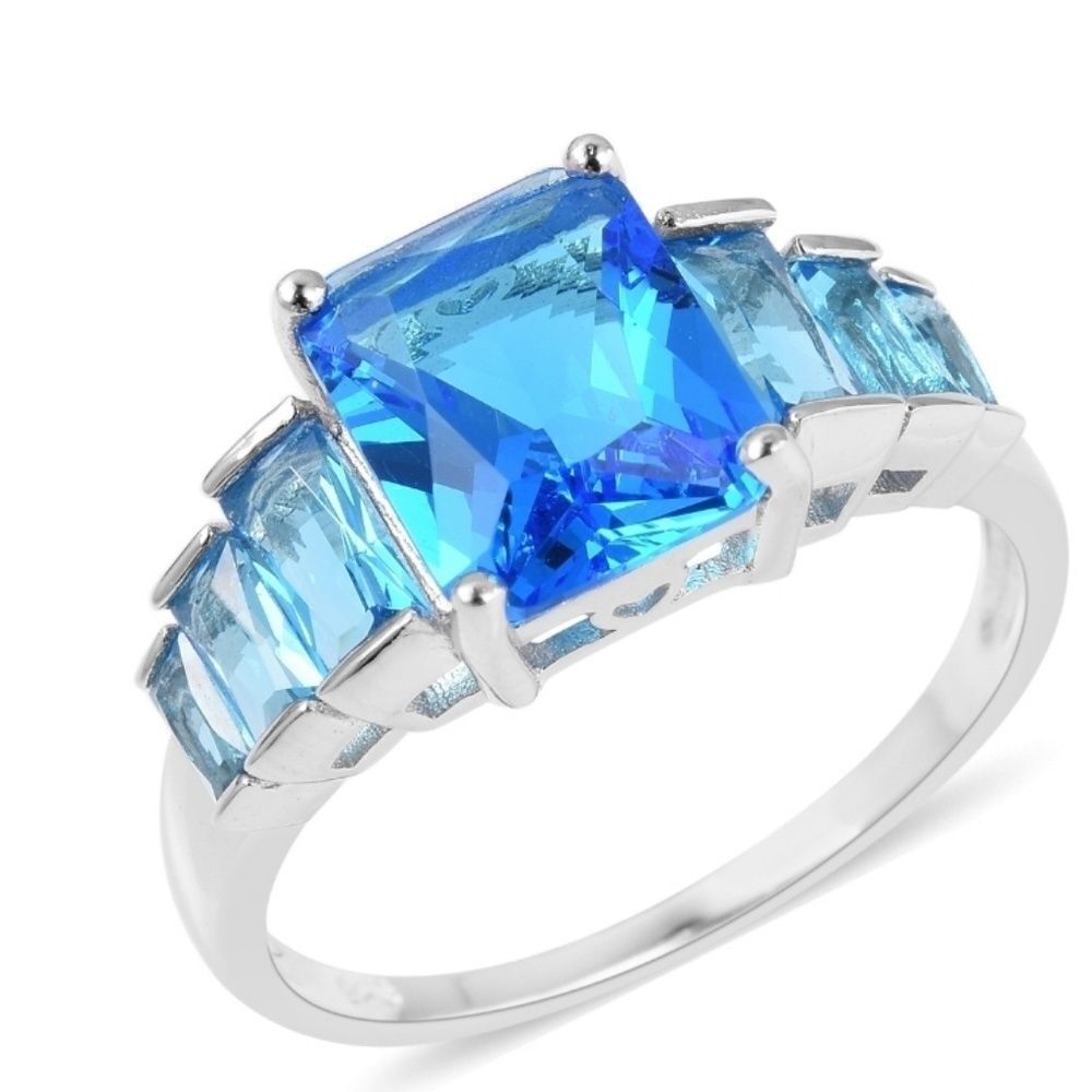 Simulated Blue Quartz, Blue CZ Ring in Sterling Silver (Size 10) 1.85 ctw