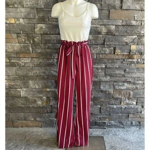 Blue Rain Womens White Maroon Red Striped Sleeveless Jumpsuit XS.