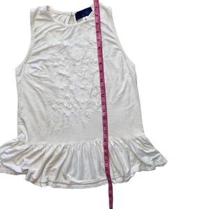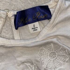 Excellent, clean condition Blue Rain blouse. Size small. Fabric content tag has been cut out but it’s extremely soft and lightweight with good stretch (I’d guess a cotton/rayon blend). Wrinkle resistant.