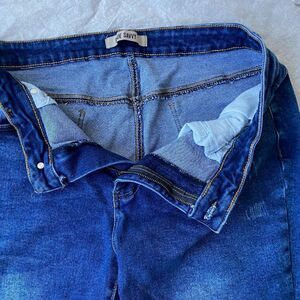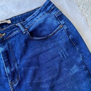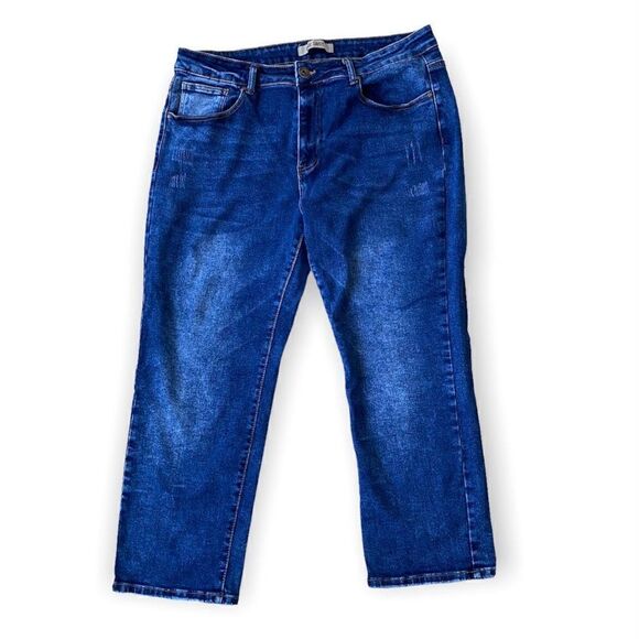 Blue Saavy Womens Blue Denim Dark Washed Ankle Length Jeans SZ 22