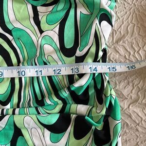 Blue Sage Womens Asymmetric Dress Fit & Flare Abstract V Neck Stretch Green XL