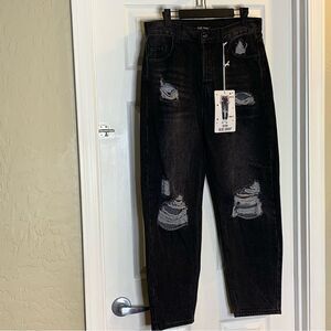 Blue Savvy MOM Jeans Black Charcoal Color Distressed Size 30