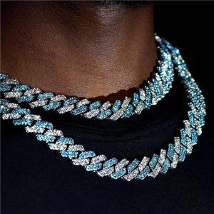 Blue/Silver Cuban Link Iced Out Chain Necklace