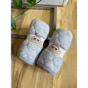 Set of two soft quilted gray pads by BlueSnail. These versatile mini blankets can be used as changing pads, burp cloths, or for extra comfort in strollers and bassinets. Both pieces have light pilling but are clean and cozy.