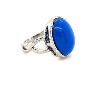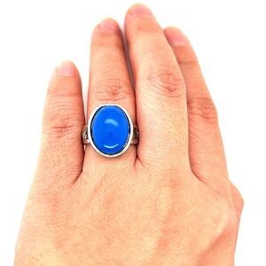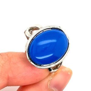 Oval Blue Stone Ring Sz 6.5 Not sure of the metal Not signed