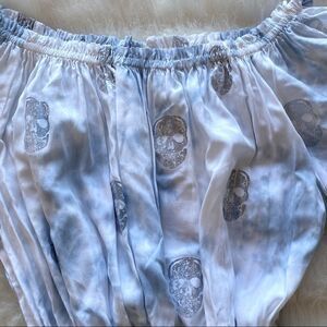 Blue Tie Dye Metallic Skull Off Shoulder Dress (M)