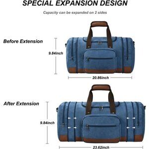 🧿Expandable Design: This carry on bag is (L) 20.87 x (W) 11.81 x (H) 10.24 inches in size, with 2 side zippers pulled down to extend the weekender bag to 23.62 inches in length. The travel duffel bags can also be carried on an airplane to facilitate your travel.