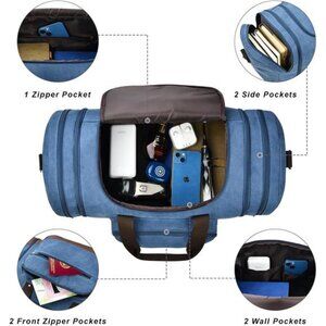 Blue+Toiletry Bag , 50L Canvas Travel Duffel Bags Overnight Weekend