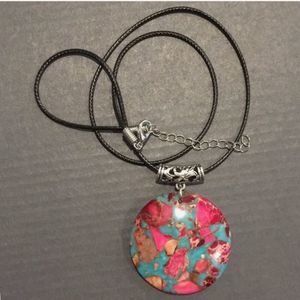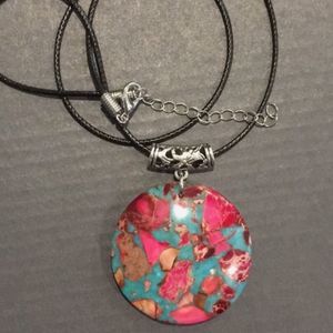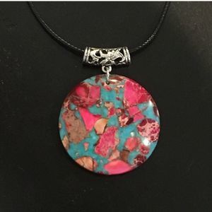Blue Turquoise with Pink Cream Pyrite Matrix Round Pendant