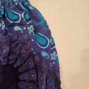 These gorgeous blue and turquoise pants feature several shades of blue, floral designs, and a pocket on the left hand side!