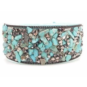 Blue Turquoise Rock Turquoise Leatherette Bracelet