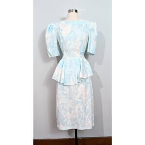 Blue/White 80s Peplum Dress