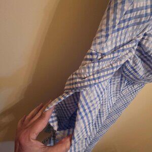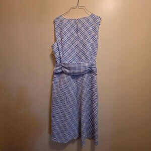 Blue/White Checkered Dress with Pockets & Belt