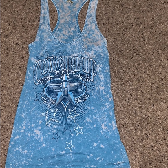 Blue/White Racerback tank.