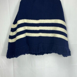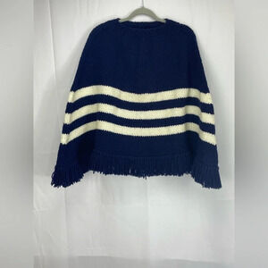 Blue/White Striped Handknit Very Bulky PONCHO CAPE - Nautical Beachy Look- Heavy