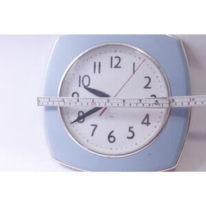 Blue-White Wall Clock, 1960s diner style MSE, Arabic numerals, 1990s 10 inches,