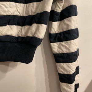 Thicker material, cropped collared shirt w/ blue and white stripes. Never worn, no tags.