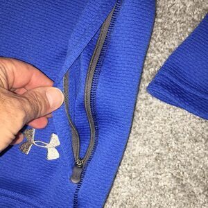 Blue all seasons gear t neck 1/4 Under Armour heavy sweatshirt w/pockets L