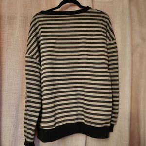 This sweater from Source Unknown features a classic crew neck design with a ribbed neckline, cuffs, and hem. The alternating blue and gray stripes offer a timeless look, perfect for casual outings or cozy days at home. Its relaxed fit ensures comfort and style in any setting. Fits oversized.