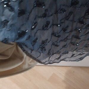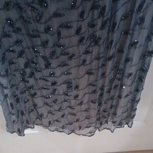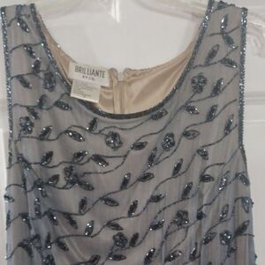 This stunning maxi sundress features a sleeveless rouge neckline, perfect for a wedding guest occasion. The dress showcases a beautiful abstract print in calming shades of blue and gray, crafted from a lightweight fabric that drapes elegantly to the floor. Its relaxed silhouette offers both comfort and style, making it an ideal choice for cocktail events. Fully satin lined. Only worn once to a party. No flaws, rips, tears. Has been dry cleaned. Pictures don't do it justice. EC.
