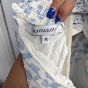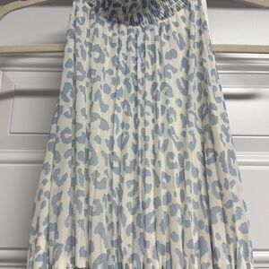 Blue and White Patterned Halter Dress OLIVACEOUS - Size Medium