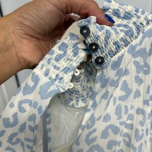 Buttons at Neck - Beautiful Slim Maxi Dress - Blue and White Leopard Print Pattern