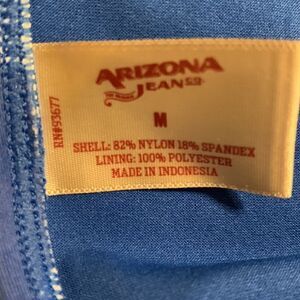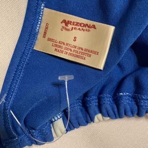 Blue and white polkadot size Medium bottom/Small top bikini swimsuit. I don't believe this has ever been worn. Still has a department store partial tag attached (no padding in top). See photos for complete description/details.