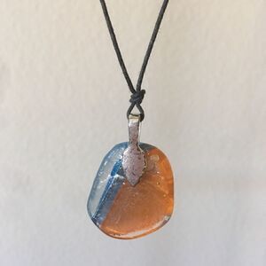 A lovely glass drop statement pendant on a very simple ribbon. Worn maybe once. Let me know if you have any questions!