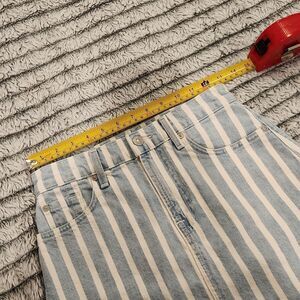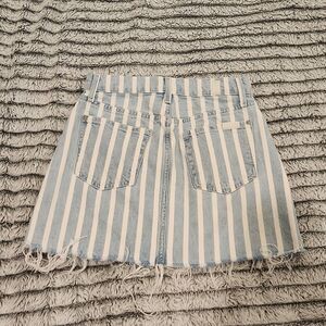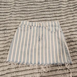 Blue and white striped 7 for all mankind jean skirt w/ distressed hem size 24.