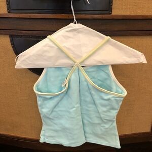 Blue and yellow Razorback tank with built in bra