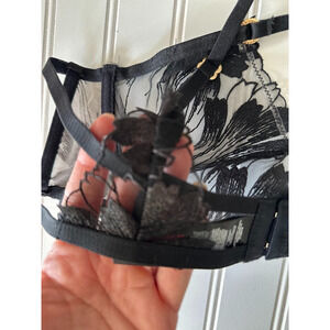 Bluebella Black Colette Bra Embroidered Underwire Size 38DDD/F Lingerie Mesh