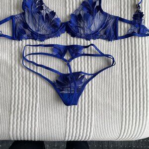 STUNNING sheer lace bra in electric blue by Bluebella. I only wore this once and now it does not fit me anymore :( Like new condition, but tags have been removed. (sizes confirmed from my order email though so certain of those!)
