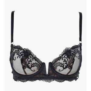 As part of one of our icon sets that has stood the test of time, the Marseille Embroidered Sheer Bra in black is crafted from our signature premium mesh with a delicately embroidered pattern of swirling florals to the cups and underband. A central V-wire adds structure to the centre gore, with adjustable shoulder straps for the perfect fit.