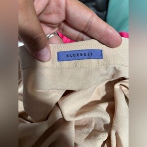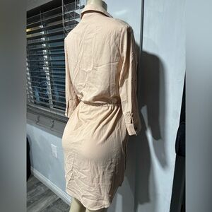 Elegant Bluebelle wrap dress in beige. Features a chic design.