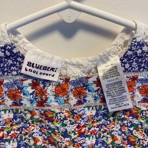 BlueBeri Boulevard Blue and Orange Floral Patchwork Dress.
