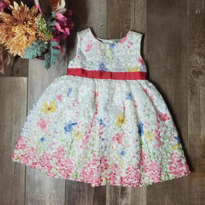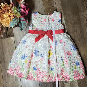 Blueberi Boulevard Formal White and Pink Floral Toddler Girl's Dress Size 18m