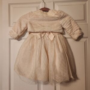 Blueberi Boulevard, elegant Cream Dress with Faux Fur Jacket, sz 3T