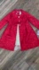 Adorable Blueberi Boulevard 2-pc set, red jacquard coat with front button closure, gorgeous floral design buttons, not lined, matching sleeveless dress, satin skirt with tulle overlay, back button closure, new with tag.