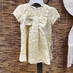 Blueberi Boulevard Baby Girls Bow-Front Shimmering Swing Dress - Light Beige Siz