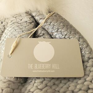 Blueberry Hill Baby Knit Infant Beanie Pompom Gray Metallic NEW Tags