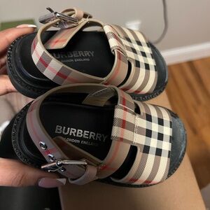 The shoe in good condition its mainly the front of the sandal that has a little wear and tear.