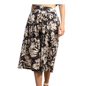 Bluebird Canyon Cade Midi Dress size Small color is black & ivory elastic waist
