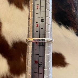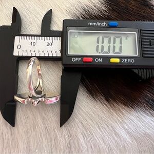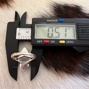 The ring measurements are 1”L x .51”W x .24”D (as seen in the photos) and weighs 4.4 gm. It has an 2.5mm band and is size 8.75. It is a closed back design.
