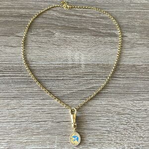 Elegant gold necklace featuring a stunning blue pendant. Perfect for adding a touch of sophistication to any outfit.stainless steel 18k gold plated waterproof
